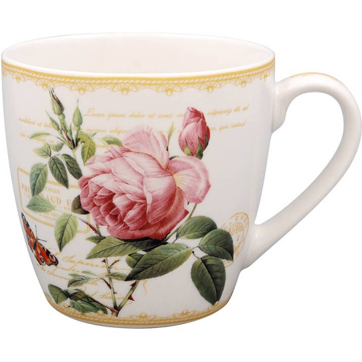 Becher Redoute Rose, Breakfast Mug XL. Ein romantisches Rosenmotiv mit Schmetterlingen... mehr