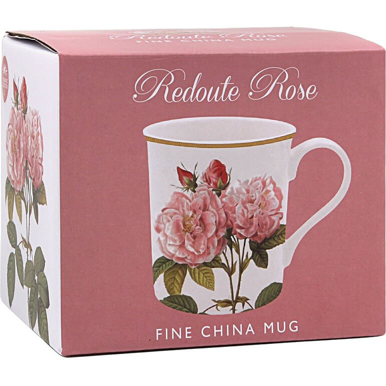 Becher Redoute Rose, rosa.  Eine romantische rosafarbene Rose ziert diesen Becher aus... mehr