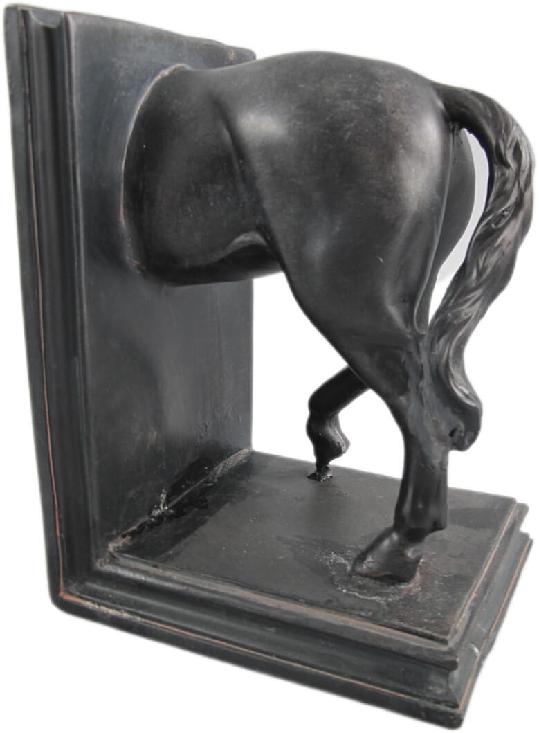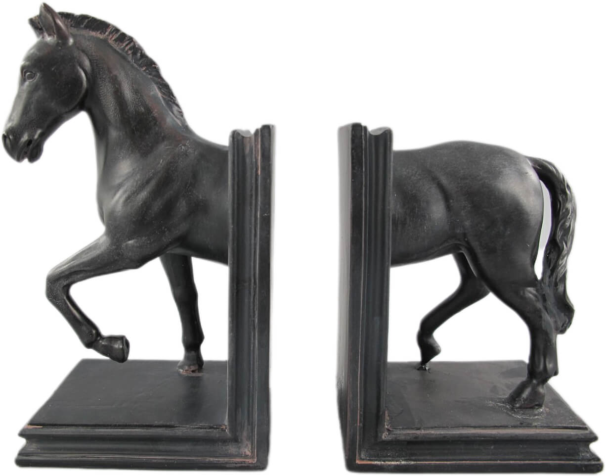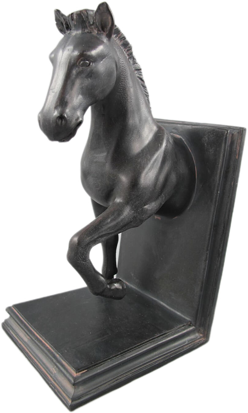Ein stolzes schwarzes Ross - aufgeteilt in zwei Buchstützen - ist sowohl mit als auch ohne Büchern dazwischen ein eindrucksvoller Anblick im Bücherregal. Mit seinem Vintage-Finish passt diese "Doppel-Skulptur" in jedes Interieur!